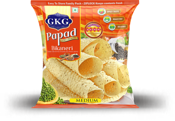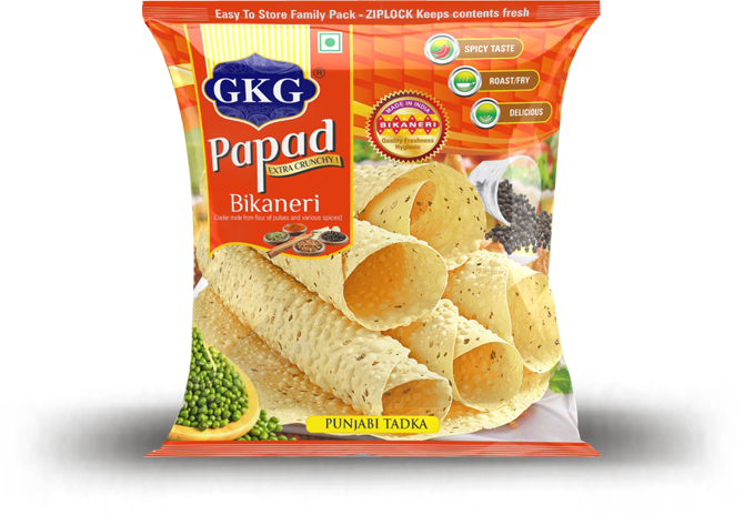 We, Bishnoi bhujia udhyog This delicious papad is made from 100% Udad dal. An all time classic papad, made with the finest sourced ingredients for the most authentic & delicious taste. This papad is ideal to be consumed as anytime snack with dips or as an accompaniment with your meals. we have available range and flavour of midium papad and punjabi tadka papad.